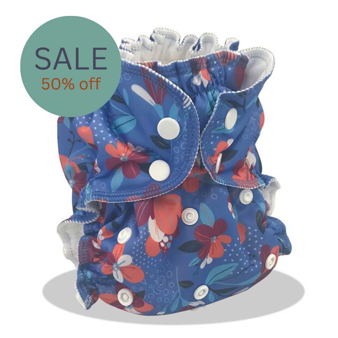 Applecheeks AIO, is an all in one (AIO) nappy which means that the absorbent insert is completely attached to the outer waterproof part of the nappy, the advantage of this is that there is no stuffing or popping together parts and there is no bits to lose!
