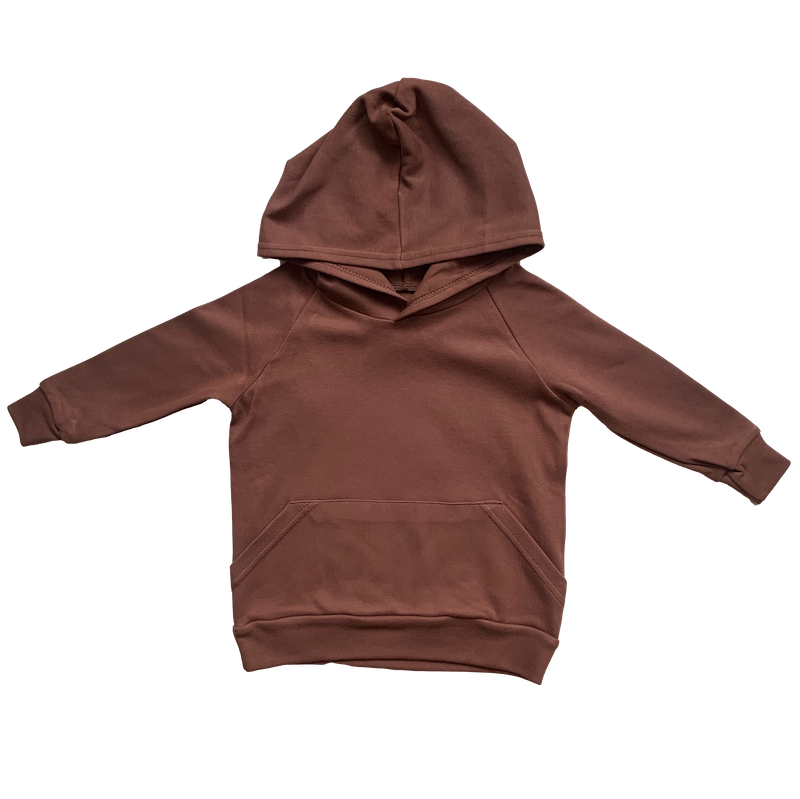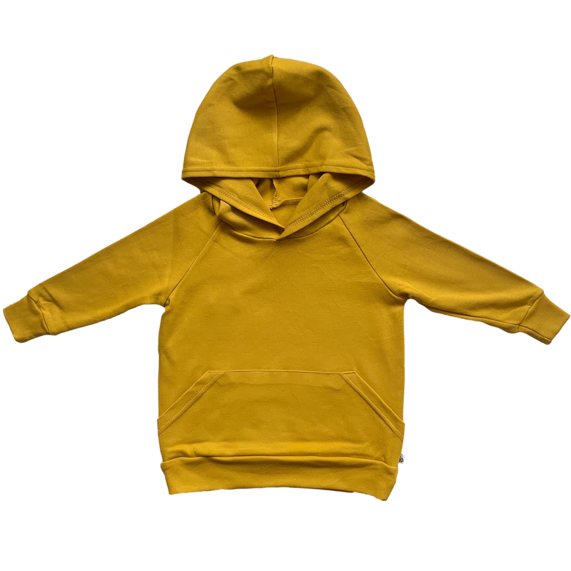 Generously sized, they feature slouchy raglan-style shoulders, a cosy front-pocket (perfect for storing pine cones, biscuits or your favourite toy) plus, of course, a snuggly hood! Ideal as an extra layer under dungarees in winter, or as a light top for a cool evening in spring or summer.