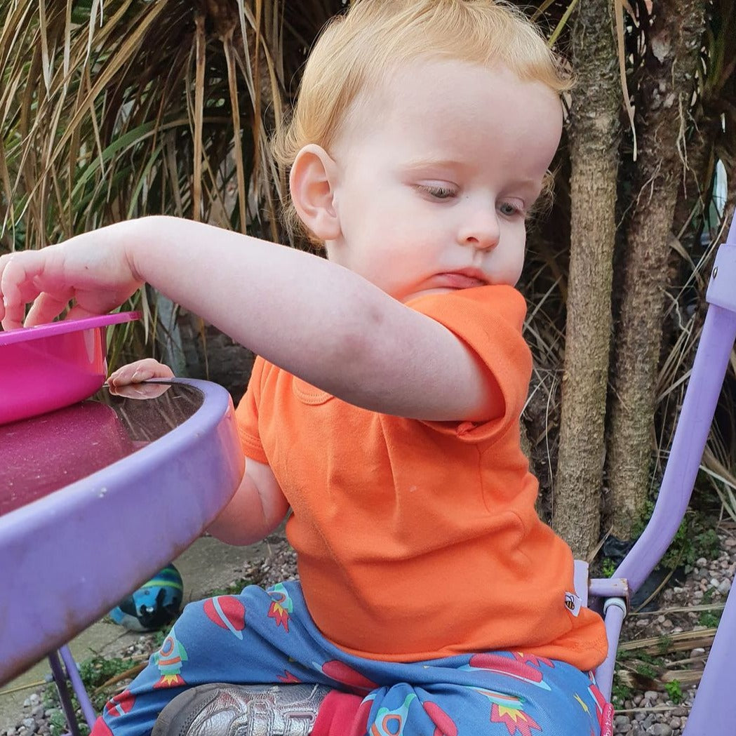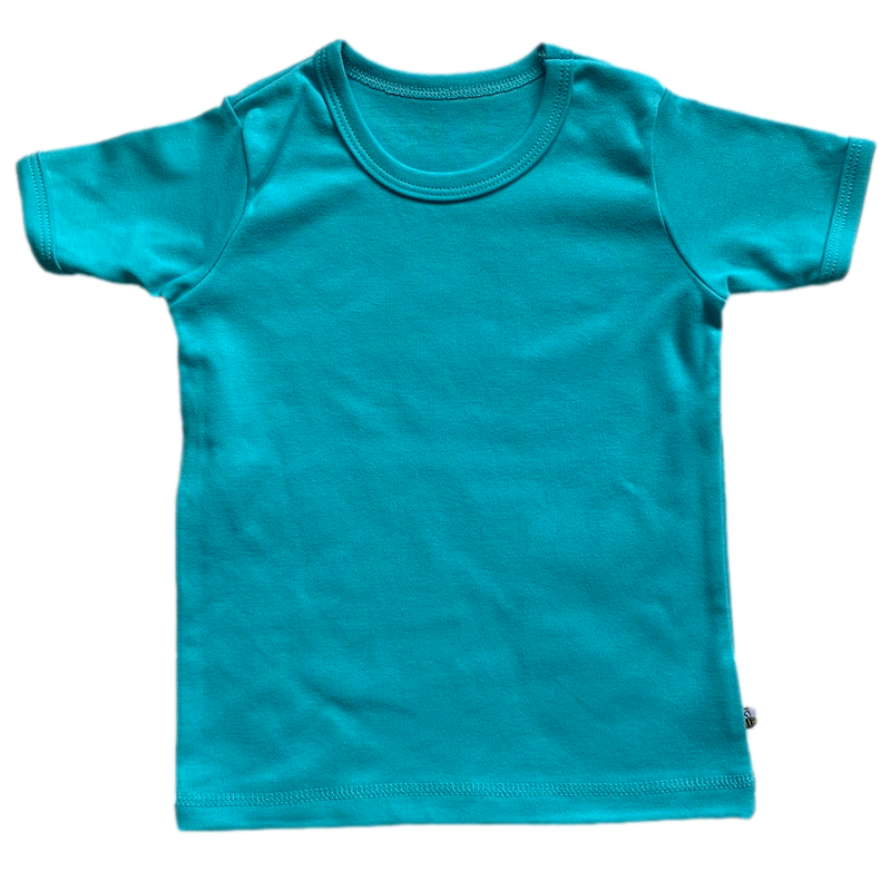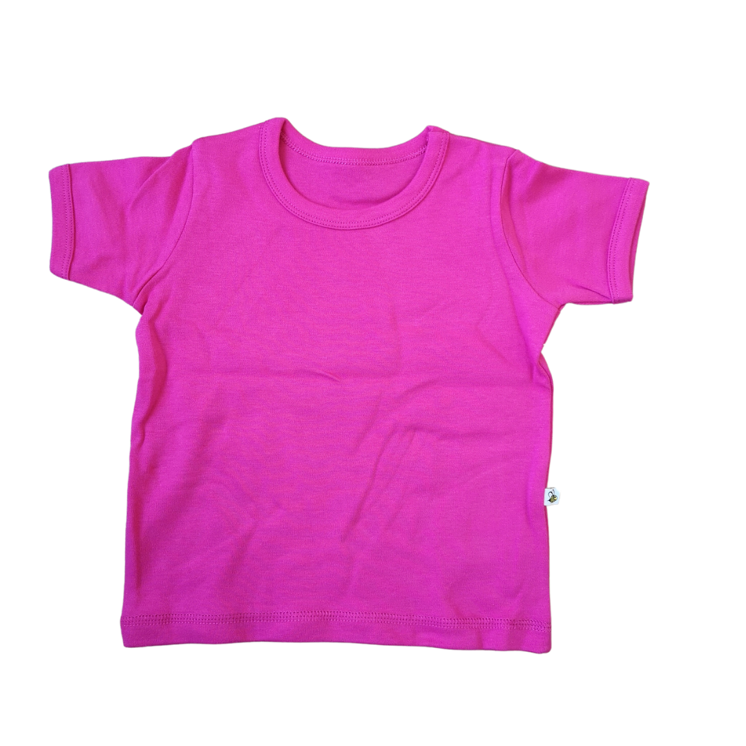 Simple, bright and bold short-sleeve kids t shirts in organic cotton. Ideal for layering up or mixing and matching. Pair with leggings, joggers, over a long sleeve tee, under dungs or pinafores.
