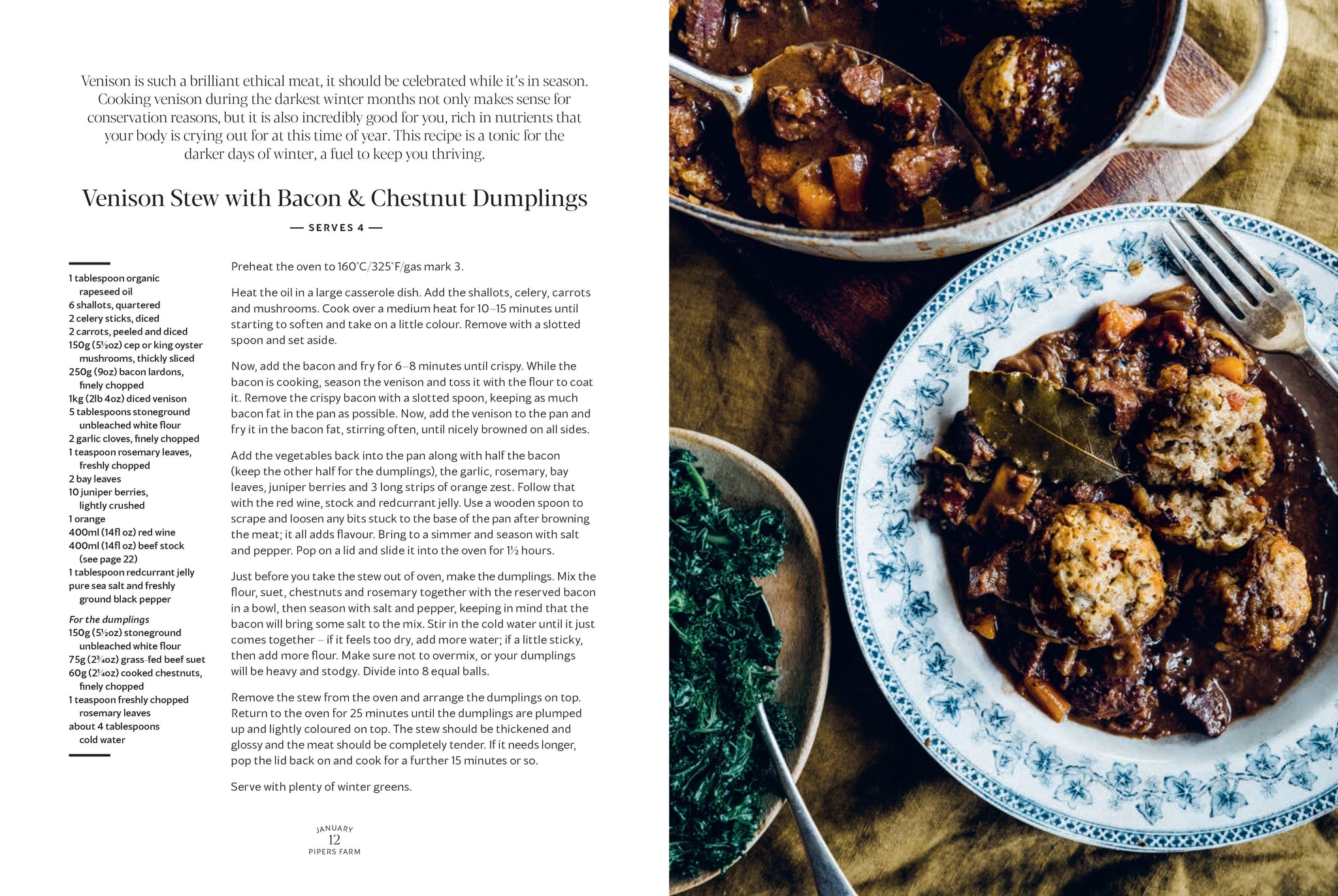Pipers Farm, The Sustainable Meat Cookbook is a celebration of meat. It explores the connection between nature and farming in a mixture of hands-in-the-earth wisdom and balanced, seasonal recipes which respect the animal by using every part.