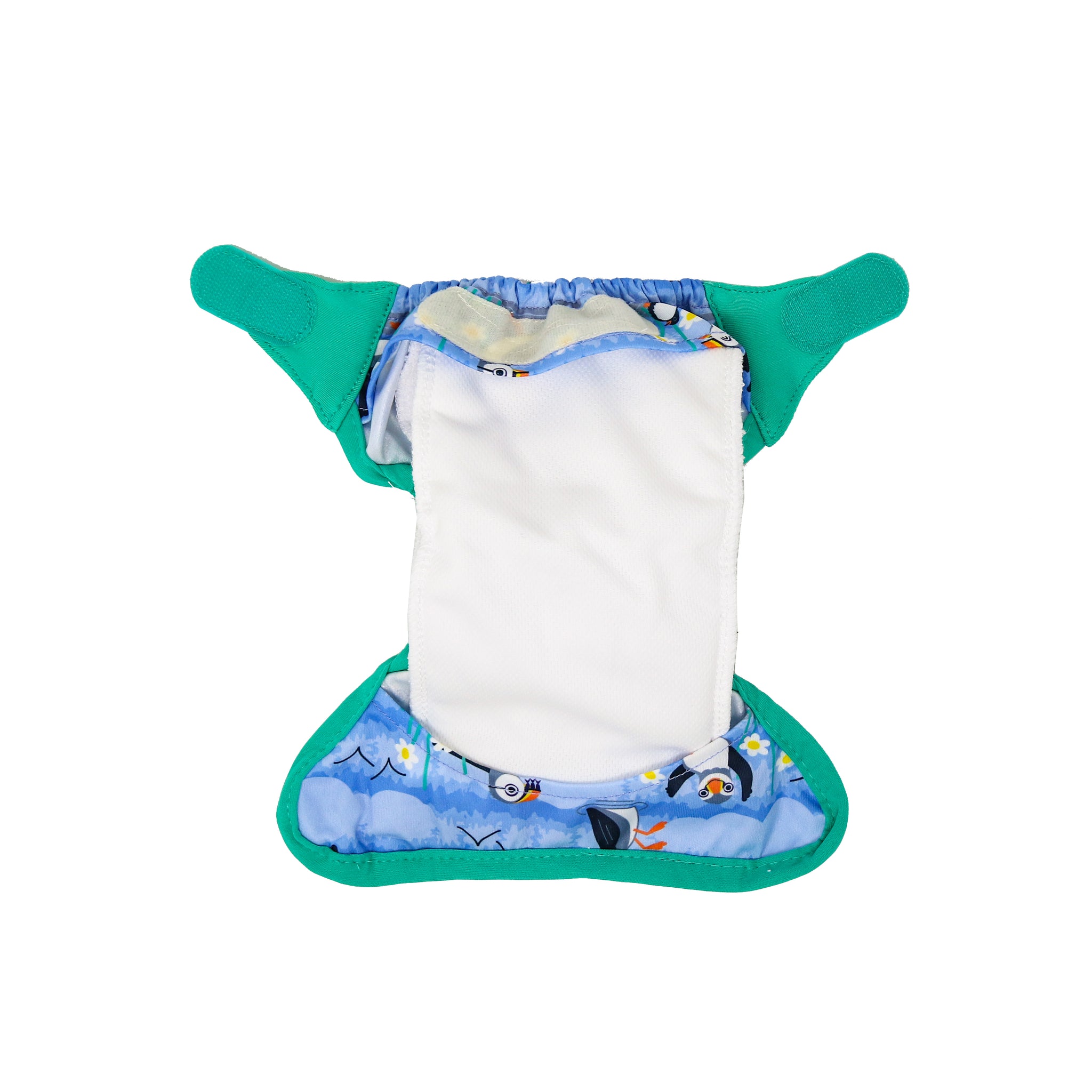 - Single printed newborn nappy contains one printed newborn outer shell and one newborn soaker