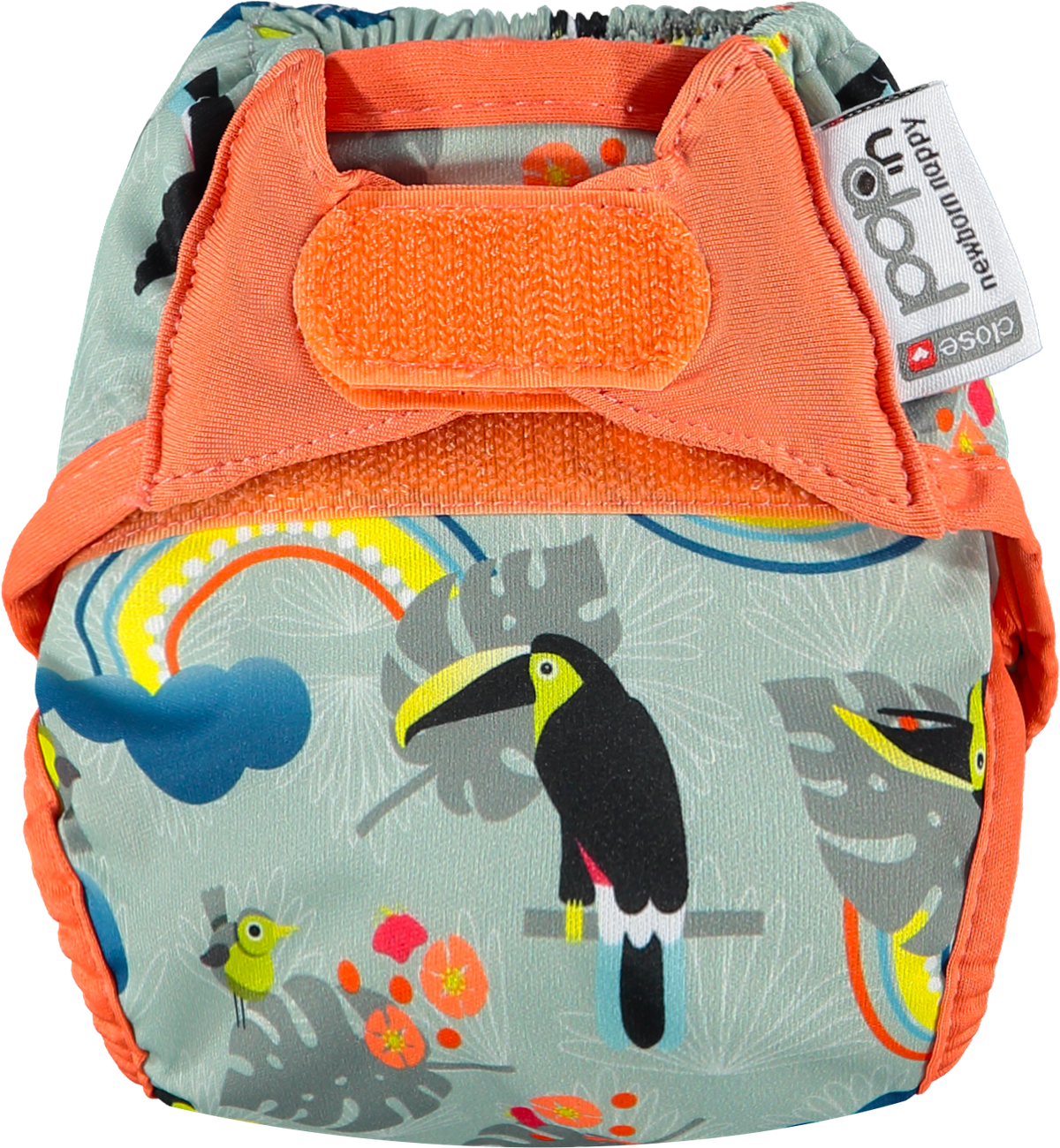 This Pop-in newborn nappy is an affordable way to bridge the gap between tiny baby and birth to potty sizing. Unlike standard one size Pop-in it is specially designed to be used on a tiny or prem baby straight from birth. Unlike its older sibling, the outerwrap can be easily be wiped clean and re-used if not soiled, leaving you to just switch the soaker over come change time...easy! The new improved bamboo viscose terry soaker is now even more absorbent too!