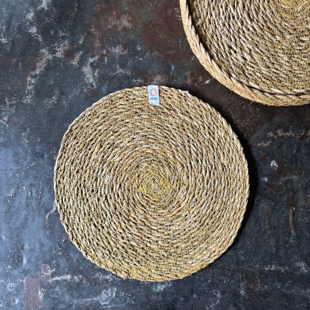 This set of seagrass tablemats comes in a close-fitting holder which can be used separately as a shallow, flat-bottomed basket. Lightweight, handwoven and practical, use them to keep surfaces clean and protected.